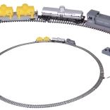 Metalowe tory z plastikowymi podkładami, łuk zasilający oraz jednostka sterująca z zasilaniem z sieci. Jazda przód/tył, STOP i płynna regulacja prędkości.