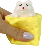.Wystarczy delikatnie ścisnąć kostkę sera dłonią, a ze środka szybko wyskoczy wesoła myszka, by po chwili znów się schować.