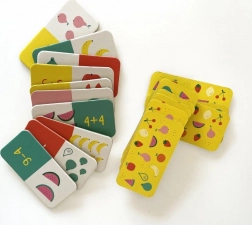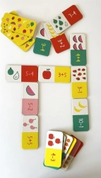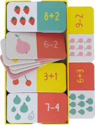 Odkryj zabawną grę edukacyjną, która łączy liczenie i myślenie logiczne w formie domina. Dzieci dokładają kartoniki z właściwymi wynikami działań do obrazków z odpowiadającą im liczbą sztuk owoców, dzięki czemu w formie zabawy wzmacniają umiejętności matematyczne, szybkość oraz koncentrację. Można grać samodzielnie lub w kilka osób, bez potrzeby użycia ołówka i papieru.