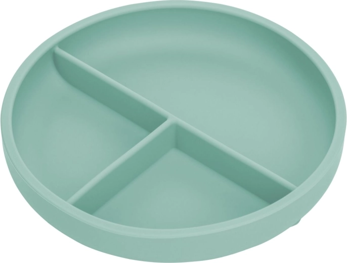 Odkryj stylowy i praktyczny silikonowy talerzyk z trzema przegródkami, idealny do karmienia dzieci. Wykonany z wysokiej jakości silikonu spożywczego, który jest bez BPA i zapewnia bezpieczeństwo oraz zdrowie Twoich dzieci. Talerzyk został zaprojektowany tak, aby był miękki i lekki, co czyni go łatwym do przenoszenia zarówno do użytku domowego, jak i w podróży.