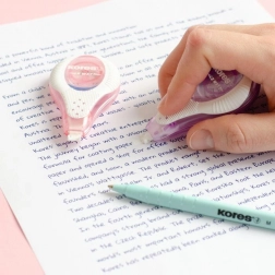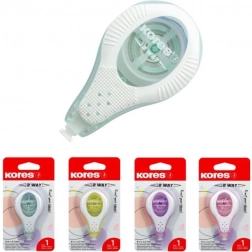 Jednorazowy korektor Kores 2 Way Pastel zapewnia precyzyjne poprawki dzięki swojej taśmie korekcyjnej o szerokości 4,2 mm i długości 8 m.