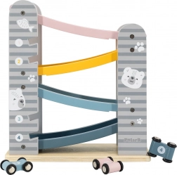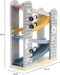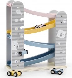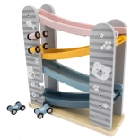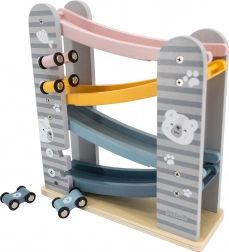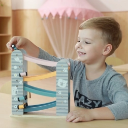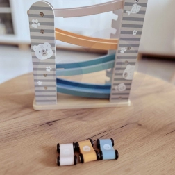 Ten drewniany tor wyścigowy zapewnia godziny zabawy i rozwija dziecięce umiejętności. Został zaprojektowany specjalnie z myślą o małych rączkach, więc nie musisz się obawiać ostrych krawędzi. W zestawie znajdziesz: