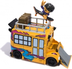 Autobus zmienia się w w pełni wyposażony skatepark z trzema rampami. Nie brakuje też prawdziwie funkcjonalnych opon i odczepianej figurki skateboardzisty. Podczas zabawy można ćwiczyć różne triki i kombinacje.