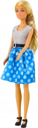 Lalka Anlily to elegancka lalka, która zachwyca wyglądem i bogatymi detalami. Wyposażona jest w stylowy srebrny top, niebieską spódnicę w białe kropki oraz czarny pasek i buty. Ta kombinacja pozwala dzieciom eksperymentować i tworzyć wyjątkowe stylizacje.