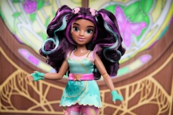 Lalka nosi różowo‑turkusową sukienkę z płatkami, legginsy z motywami Magii roślin, kwieciste buty oraz dodatki, takie jak spinki, rękawiczki i pasek z motylami. Z akcesoriami do stylizacji włosów stworzysz wiele fryzur i historii. Rozszerz swoją kolekcję o kolejne postacie i ich jednorożce, by przeżyć jeszcze większe przygody na Wyspie Jednorożców.