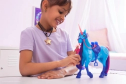 Precyzyjnie wykonane elementy, takie jak perłowe symbole i błyszczący róg, podkreślają magiczną estetykę tej zabawki.