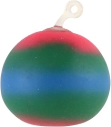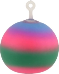 Tęczowa antystresowa piłka z miękkiego silikonu świetnie leży w dłoni i pomaga w redukcji stresu oraz poprawie koncentracji. Dzięki średnicy 11 cm wygodnie się ją ściska, formuje i zgina. Praktyczna zawieszka pozwala przypiąć ją do torby lub kluczy – idealna do domu, pracy i w podróży.