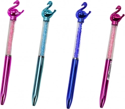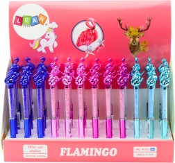 Długopis z flamingiem i błyszczącymi kryształkami, niebieski wkład 0,7 mm (mix kolorów)