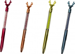 Ten stylowy długopis kulkowy z jelonkiem zachwyca oryginalnym wzornictwem i efektownym wyglądem. Przezroczysta nasadka z drobnymi „diamentami” subtelnie lśni i podkreśla elegancki, luksusowy charakter artykułu piśmienniczego. Możesz wybrać niebieski lub czarny tusz w zależności od okazji.