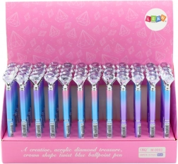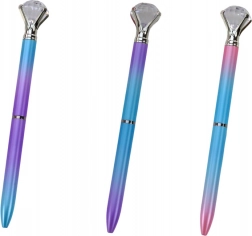 Ten stylowy długopis łączy elegancki design z praktyczną funkcjonalnością. Na końcu znajduje się wyrazisty, błyszczący „diament”, który przyciąga wzrok i czyni z długopisu idealny prezent oraz modny dodatek do piórnika czy biura.