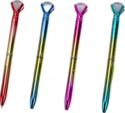 Elegancki długopis kulkowy z dużym, błyszczącym „diamentem” na końcu nada Twoim notatkom i korespondencji luksusowy wygląd. Płynne pisanie niebieskim atramentem, uniwersalna końcówka 0,7 mm oraz złote korpus z kolorowymi akcentami (różowy, niebieski, czerwony, zielony) sprawiają, że to stylowy dodatek na co dzień i na wyjątkowe okazje.