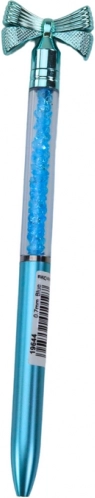 Długopis kulkowy z kokardką i kryształkami, niebieski wkład 0,7 mm