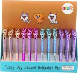 Spraw sobie radość efektownym długopisem, który łączy design i funkcjonalność. Na końcu długopisu znajduje się mały piesek, a przezroczysty korpus wypełniony jest drobnymi kryształkami przypominającymi diamenty, które tworzą imponujące świetlne refleksy. Dzięki niebieskiemu tuszowi długopis świetnie sprawdzi się w szkole, biurze i do korespondencji osobistej.