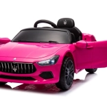 Stylowy dziecięcy elektryczny samochodzik MASERATI Ghibli w różowym kolorze zapewnia realistyczne wrażenia z jazdy dla małych kierowców. Oferuje otwierane drzwi, światła, wygodne siedzisko z pasem bezpieczeństwa oraz sterowanie jazdą do przodu/tyłu. Idealny do zabawy na zewnątrz i w domu.