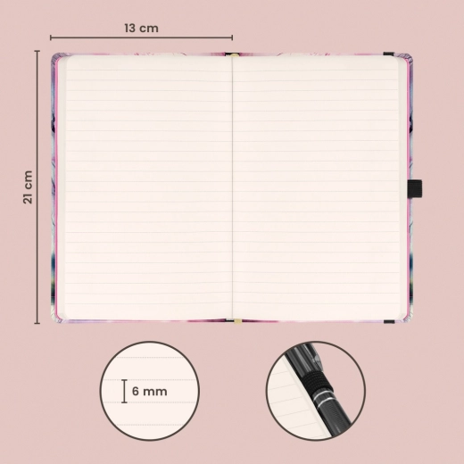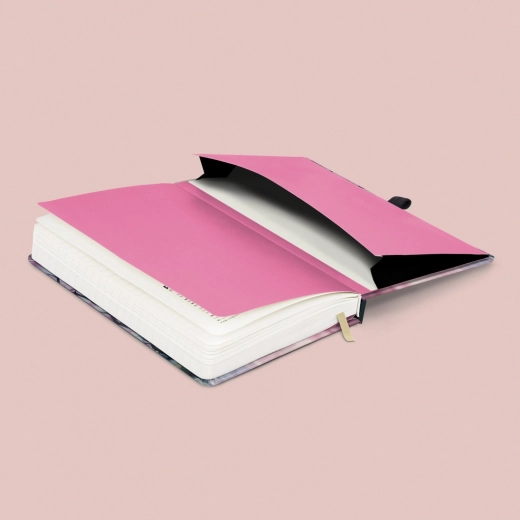Stylowy notes NOTIQUE z motywem sakury jest idealny do codziennego pisania. Dzięki twardej okładce i zapięciu na gumkę zawartość pozostaje bezpieczna, a pętelka na długopis oraz praktyczna wewnętrzna kieszeń ułatwiają organizację drobiazgów.