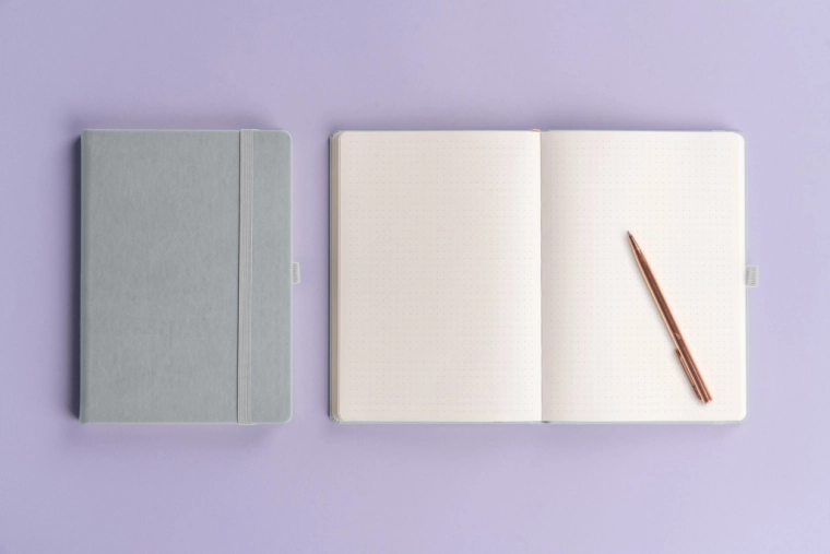 Stylowy notes Notique Balacron wyróżnia się wysokiej jakości okładką, która jest wyjątkowo odporna na uszkodzenia zewnętrzne. Srebrny kolor wygląda profesjonalnie i ponadczasowo, a kropkowany układ stron zapewnia elastyczność do pisania, rysowania i bullet journalingu.