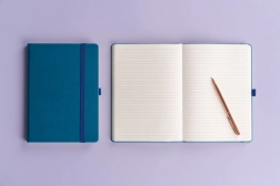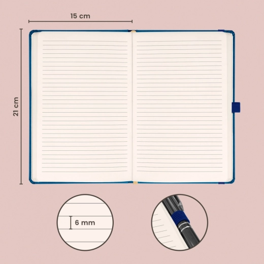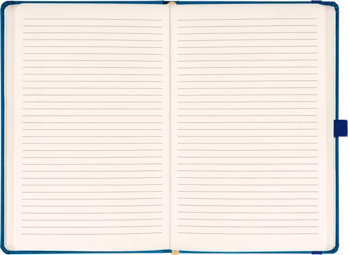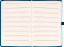 Elegancki liniowany notes Notique Aprint w niebieskim kolorze w uniwersalnym formacie 15 × 21 cm. Oferuje klasyczny i ponadczasowy design, delikatną fakturę powierzchni oraz możliwość łatwego tłoczenia firmowego logo – idealny do biura, szkoły i jako reprezentacyjny upominek.