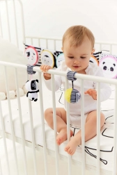 Design z kontrastowymi kolorami pomaga dziecku rozwijać wzrok.