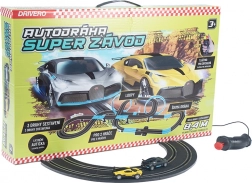Tor wyścigowy DRIVERO o długości 8,4 m oferuje emocjonujące wyścigi dla małych i dużych. Zasilanie z zasilacza (trafo), 3 warianty ułożenia toru oraz 2 licencjonowane autka BUGATTI zapewnią godziny zabawy.