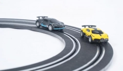 Poczuj intensywną atmosferę wyścigów na torze DRIVERO o długości 8,4 m. Dzięki zasilaniu z zasilacza (trafo) korzystasz ze stabilnej mocy i niezawodnej jazdy. W zestawie znajdują się dwa licencjonowane autka BUGATTI, a tor można ułożyć w trzech różnych konfiguracjach wedle uznania.