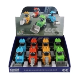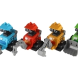 Roboty wykonane są z wytrzymałego plastiku i występują w czterech atrakcyjnych wariantach inspirowanych maszynami budowlanymi. Kompaktowe wymiary 8 × 10 × 14 cm dobrze leżą w dziecięcej dłoni i pobudzają wyobraźnię oraz rozwój motoryki małej.