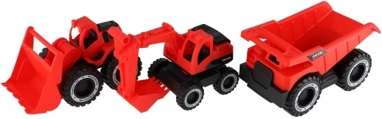 - 3 sztuki w opakowaniu – koparka, ładowarka, wywrotka