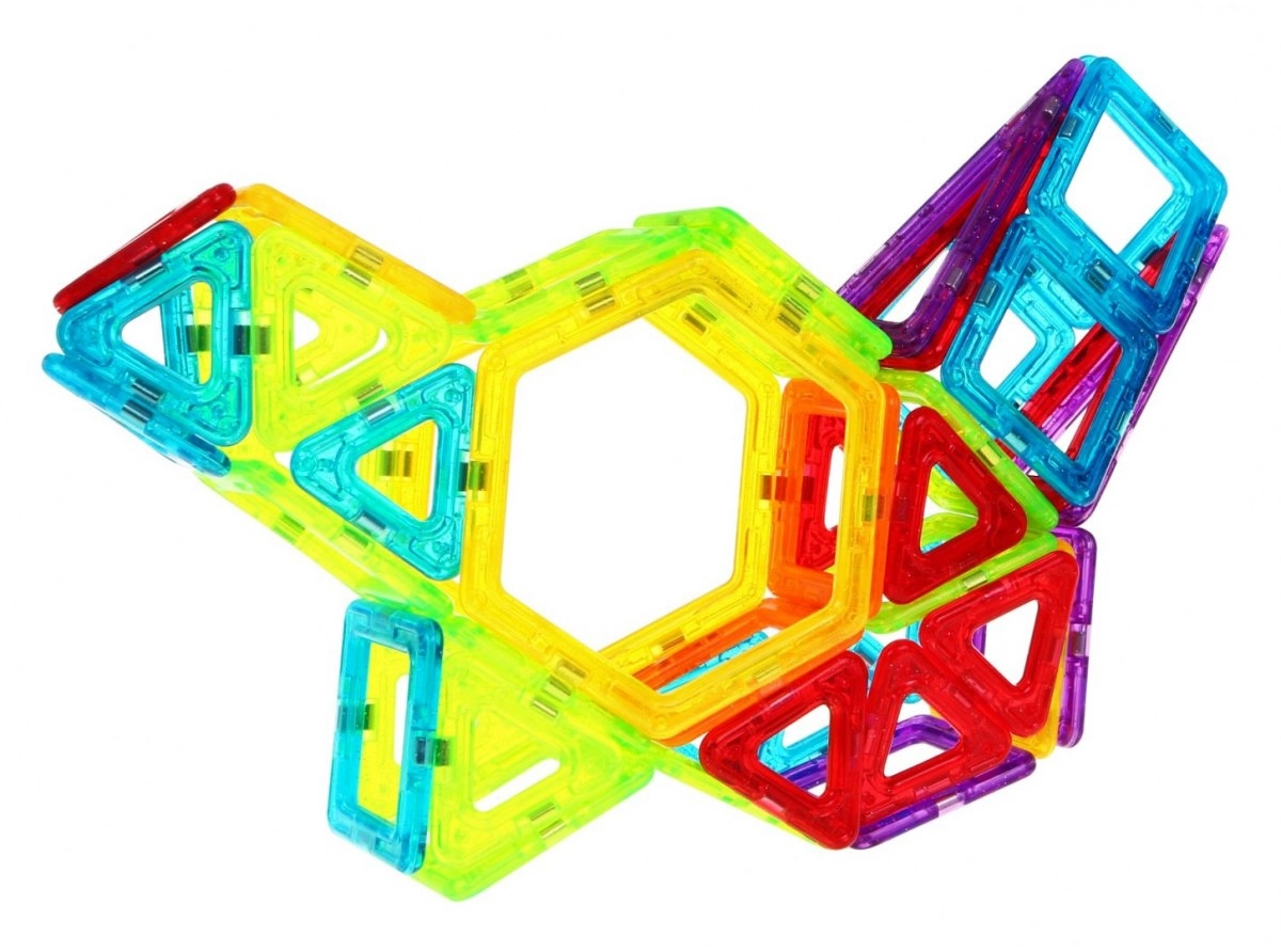 Duży zestaw kolorowych klocków z wbudowanymi magnesami.