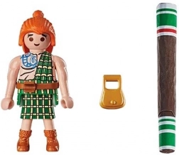 Zestaw zawiera autentyczne figurki i akcesoria w szkockim stylu, w tym kilt i flagę z tartanem.