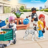 Twórz realistyczne sceny zabawy z postaciami i akcesoriami, takimi jak wózek sklepowy i pies na smyczy.