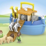 Przygotuj się na przygodę z Playmobil Junior Moja Arka Noego, gdzie Twoje dziecko pozna niezwykłą historię Arki Noego. Zestaw zawiera różne figurki zwierząt, w tym żyrafy, zebry i słonie, które można załadować na dużą niebieską łódź. Interaktywna i edukacyjna zabawa wspiera opowiadanie historii i kreatywność u dzieci.