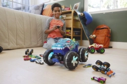 Zanurz się w świecie emocjonującej zabawy z Hot Wheels Monster Trucks Mega-Wrex w skali 1:15. Ten wyjątkowy model wyposażono w światła i dźwięki, które aktywują się przy każdej interakcji, zapewniając dzieciom nieustannie inspirujące, pełne energii wrażenia.