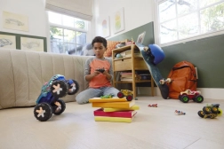 Po naciśnięciu i przytrzymaniu przycisku akcji auto staje na dwa koła i wykonuje trik! Kolory i dekoracje poszczególnych modeli mogą się różnić, jednak każdy z nich gwarantuje godziny pełnej dynamiki zabawy.