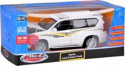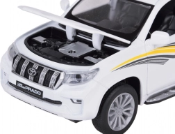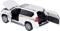 Ten realistyczny model TOYOTA LAND CRUISER PRADO wyróżnia się precyzyjnym odwzorowaniem nadwozia i wnętrza oraz wytrzymałą metalową konstrukcją. Dzięki skali 1:26–1:36 wygląda wiarygodnie i świetnie sprawdza się zarówno do zabawy, jak i do ekspozycji w kolekcji. Biała karoseria ze sportowymi detalami podkreśla solidny charakter SUV-a.