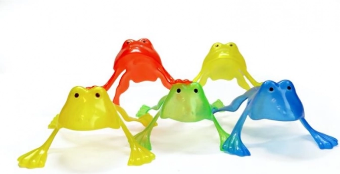 Zestaw zawiera żabki w kilku jaskrawych kolorach, które od razu przyciągają uwagę dzieci i ułatwiają podział na drużyny do rywalizacji.