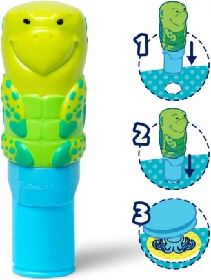 Sticker Wow od Melissa & Doug to podwodny zestaw przygodowy dla Twojego dziecka! Kolorowy stempel w kształcie uśmiechniętego żółwia morskiego to rewolucja w świecie dziecięcych naklejek. Jedno dociśnięcie tworzy piękną naklejkę z morskimi motywami. Przy każdym użyciu Twoje dziecko odkryje nową, fascynującą naklejkę!