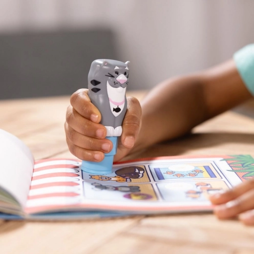 Skorzystaj z nieograniczonych możliwości naszego zestawu: stempel w kształcie szarego kota z białym pyszczkiem i różowym noskiem, wkład z 300 naklejkami o tematyce zwierzęcej oraz 24-stronicowa kolorowa książka do tworzenia własnej zwierzęcej opowieści.