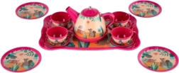 W komplecie znajduje się czajniczek, filiżanki i spodki z wesołymi motywami zwierzątek i kwiatów. Dzieci mogą zaprosić kolegów, lalki lub pluszaki i ćwiczyć komunikację, wyobraźnię i małą motorykę. Odpowiednie dla dzieci od 3 lat.
