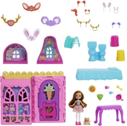 Otwórz domek dla lalek i odkryj siedem stref do zabawy, w tym kuchnię, łazienkę, sypialnię, a nawet basen na dachu! Wzbogacaj zabawę dzięki 24 dodatkom, które tworzą wiele unikalnych historii z Enchantimals w tym uroczym domku. Zawiera nie tylko akcesoria dla lalki i zwierzątka, ale także cztery pary zwierzęcych uszek do ozdabiania domku. Daj się ponieść wyobraźni! Wspaniały prezent dla dzieci od 4 lat, zwłaszcza dla tych, które uwielbiają zabawę w dom z przyjaciółmi. Kolory i elementy dekoracyjne mogą się różnić.