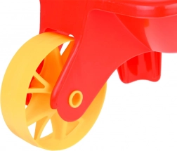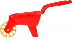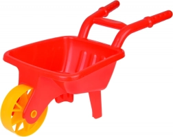 Plastikowa taczka z jednym szerokim kołem i wygodnymi uchwytami ułatwia przenoszenie piasku, ziemi czy zabawek. Dzieci ćwiczą równowagę i koordynację ruchową.
