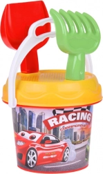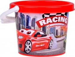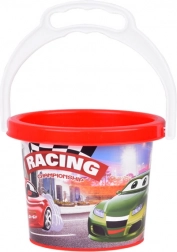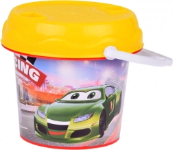 Kolorowe wiaderko z motywem wyścigów zachęca dzieci do zabawy i łatwo je przenosić dzięki solidnemu uchwytowi. Doskonałe do wody i piasku.
