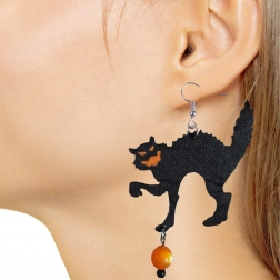 Wyróżnij się z tłumu dzięki efektownym kolczykom z motywem kota czarownicy. Te oryginalne dodatki świetnie podkreślą Twój kostium i stworzą mistyczną atmosferę Halloween. Dzięki lekkiej konstrukcji przyjemnie nosi się je przez cały wieczór.