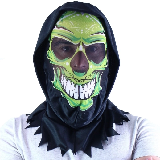 Stwórz niezapomniany kostium z tą tekstylna maską szkieletu, która przyciąga wzrok od pierwszego spojrzenia. Lekki i oddychający materiał zapewnia komfort nawet podczas dłuższego noszenia, dlatego świetnie sprawdzi się na halloweenowe imprezy, karnawał lub cosplay.