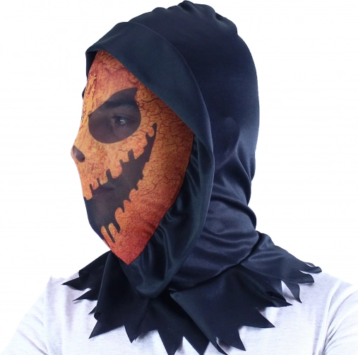 Stwórz perfekcyjnie przerażający look z tą pomarańczową maską dyni z przyjemnej tkaniny. Zintegrowany kaptur i postrzępione brzegi potęgują halloweenowy klimat, dzięki czemu na żadnej imprezie nie pozostaniesz niezauważony.