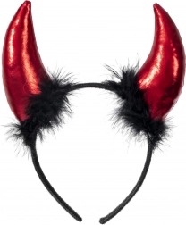 - Opaska z diabelskimi rogami – trzyma się pewnie i jest delikatna dla dziecięcej głowy.