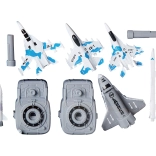- Trzy myśliwce z napędem na sprężynę, każdy o długości 9 cm – idealne do ekscytujących wyścigów.