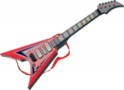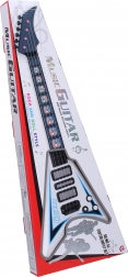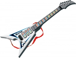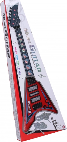Ta elektryczna gitara jest idealna dla początkujących i zaawansowanych muzyków dzięki swoim wymiarom 22x5x56 cm. Posiada efekty świetlne i dźwiękowe, które tworzą wyjątkowe doświadczenie podczas grania. Zasilanie trzema bateriami 3xAA, które nie są częścią zestawu, i łatwe sterowanie dzięki przełącznikowi ON/OFF przy potencjometrach. Oba potencjometry służą do sterowania efektami.