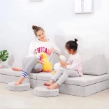 Odkryj sprytny modułowy fotel dla dzieci marki ECOTOYS z 8 miękkimi poduszkami, które można dowolnie układać w fotel, sofę, puf lub materac. Lekka konstrukcja, zdejmowane pokrowce ułatwiające czyszczenie oraz przyjemna, trwała tkanina w uniwersalnym szarym kolorze zapewnią wygodę i zabawę każdego dnia. Udźwig 120 kg.