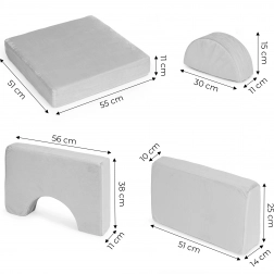 Odkryj sprytny modułowy fotel dla dzieci marki ECOTOYS z 8 miękkimi poduszkami, które można dowolnie układać w fotel, sofę, puf lub materac. Lekka konstrukcja, zdejmowane pokrowce ułatwiające czyszczenie oraz przyjemna, trwała tkanina w uniwersalnym szarym kolorze zapewnią wygodę i zabawę każdego dnia. Udźwig 120 kg.