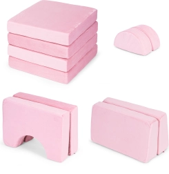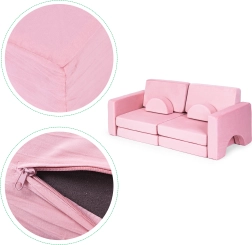 Składana modułowa dziecięca sofa dla 2 dzieci, 10 poduszek ECOTOYS – różowa