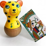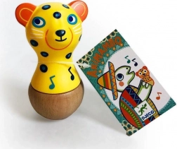 Ta kolorowa grzechotka w kształcie jaguara to świetny towarzysz pierwszych odkryć świata. Dzięki kompaktowemu rozmiarowi około 10 cm doskonale leży w dziecięcej rączce i zachęca do potrząsania oraz badania. Delikatny grzechoczący dźwięk stymuluje słuch i wspiera koordynację ręka–oko.